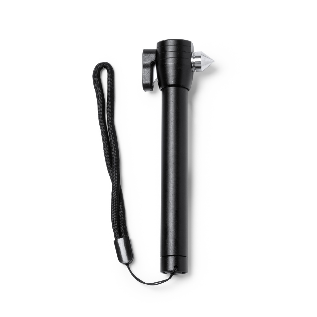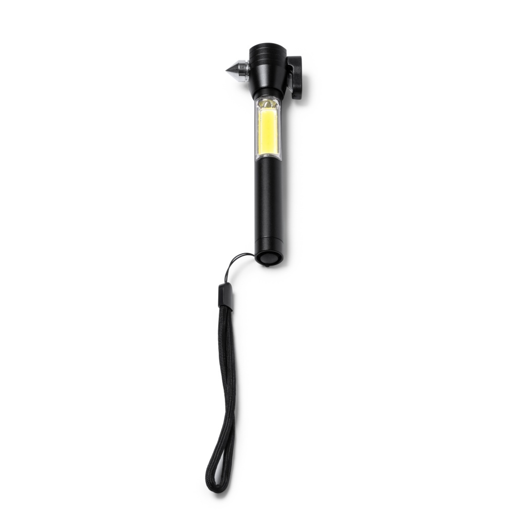 Wielofunkcyjna latarka z funkcją młotka, do tłuczenia szyb i przecinania pasów bezpieczeństwa. Bateria AAA w zestawie. Zapakowana w eleganckie pudełko.