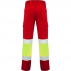 Długie spodnie robocze z licznymi kieszeniami, dobrze widoczne z daleka.
