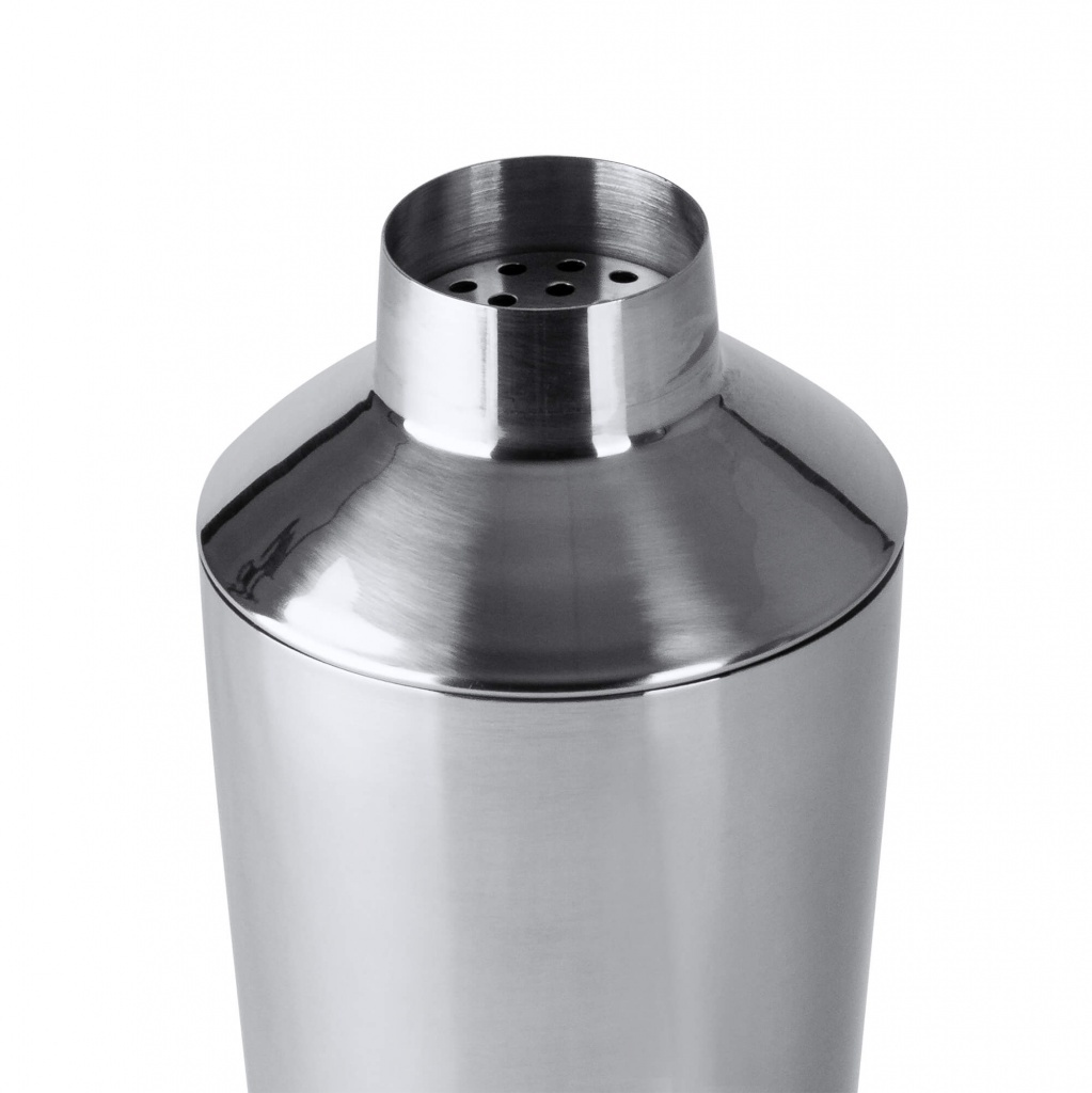 Shaker wykonany ze stali nierdzewnej, wyposażony w pokrywkę zapobiegającą kapaniu oraz w miarkę.