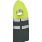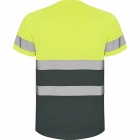 Techniczna koszulka z krótkim rękawem zapewniająca wysoką widoczność. Okrągły dekolt wykonany z tej samej tkaniny z wzmocnionymi szwami. Dwie poziome taśmy odblaskowe na środku oraz pojedyncze taśmy na rękawkach.