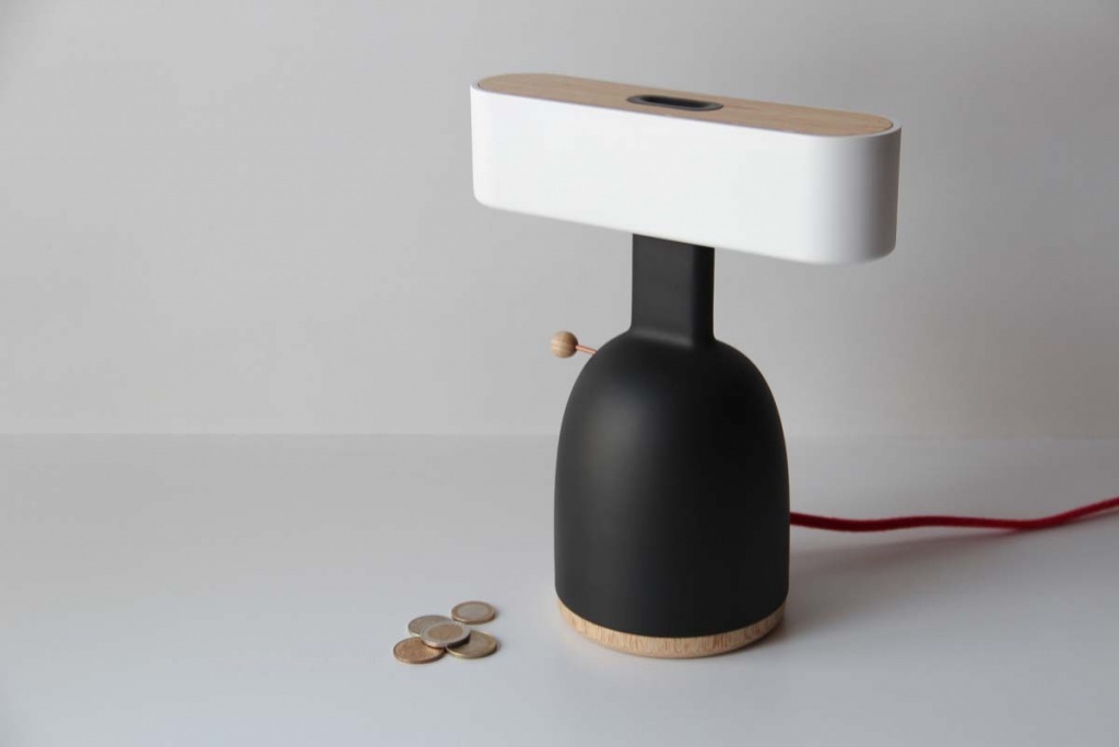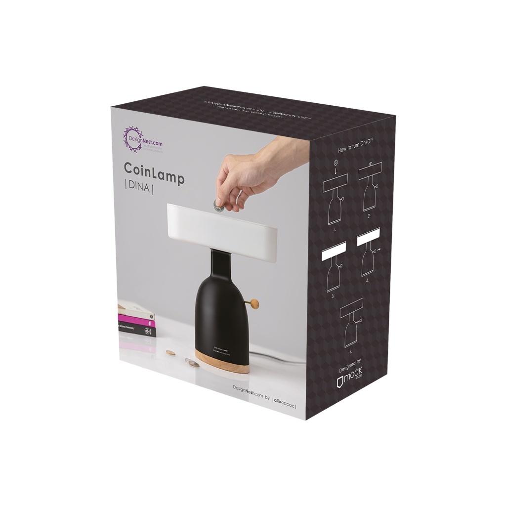 Lampa DINA uruchamia się dopiero po położeniu monety na centralnym przełączniku, co aktywuje źródło światła.