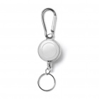 Rozciągany przewód zakończony karabińczykiem z kółeczkiem — idealny do mocowania Ski Pass.