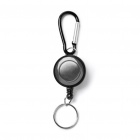Rozciągany przewód zakończony karabińczykiem z kółeczkiem — idealny do mocowania Ski Pass.