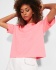 Koszulka z krótkim rękawem o luźnym kroju. Okrągły, prążkowany dekolt. Wzmocnione, kryte szwy w tym samym kolorze.