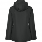 Damska wodoodporna kurtka typu parka z pikowaną podszewką, zaprojektowana z myślą o ochronie przed wiatrem i deszczem. Posiada wysoki kołnierz ze zwijanym kapturem z kieszenią na kaptur zapinaną na rzep, zamek dopasowany kolorem do klapy oraz boczne kieszenie kryte klapami i zamkami. W środku znajduje się wewnętrzna kieszeń zapinana na rzep, regulowane mankiety na rzep oraz wewnętrzny dostęp do wzmocnień na plecach i lewej piersi.