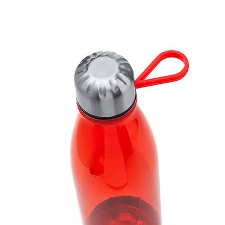 Butelka wykonana jest z przezroczystego tworzywa AS, nakrętka i podstawa wykonane ze stali nierdzewnej. Wyposażona w praktyczny pasek do noszenia w kolorze, doskonale sprawdza się podczas codziennego użytkowania. Ergonomiczny kształt zapewnia wygodę użytkowania. Możliwość znakowania.
