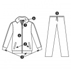 5. Spodnie z elastycznym pasem i regulowanym ściągaczem, dwie boczne kieszenie wykończone lamówką.