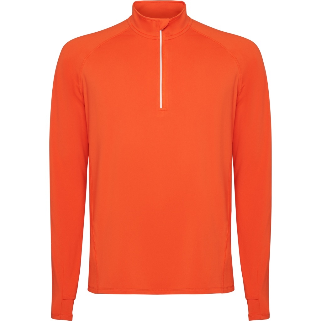Raglanowa, techniczna bluza dresowa z długim rękawem, zapinana na pół zamka, z odblaskowymi detalami w kołnierzu i wstawkami na plecach. Bluza ma wzmocnione szwy, mankiety z otworami na kciuki oraz tylną część nieco dłuższą niż przednia; wnętrze uszyte z ocieplonego materiału.