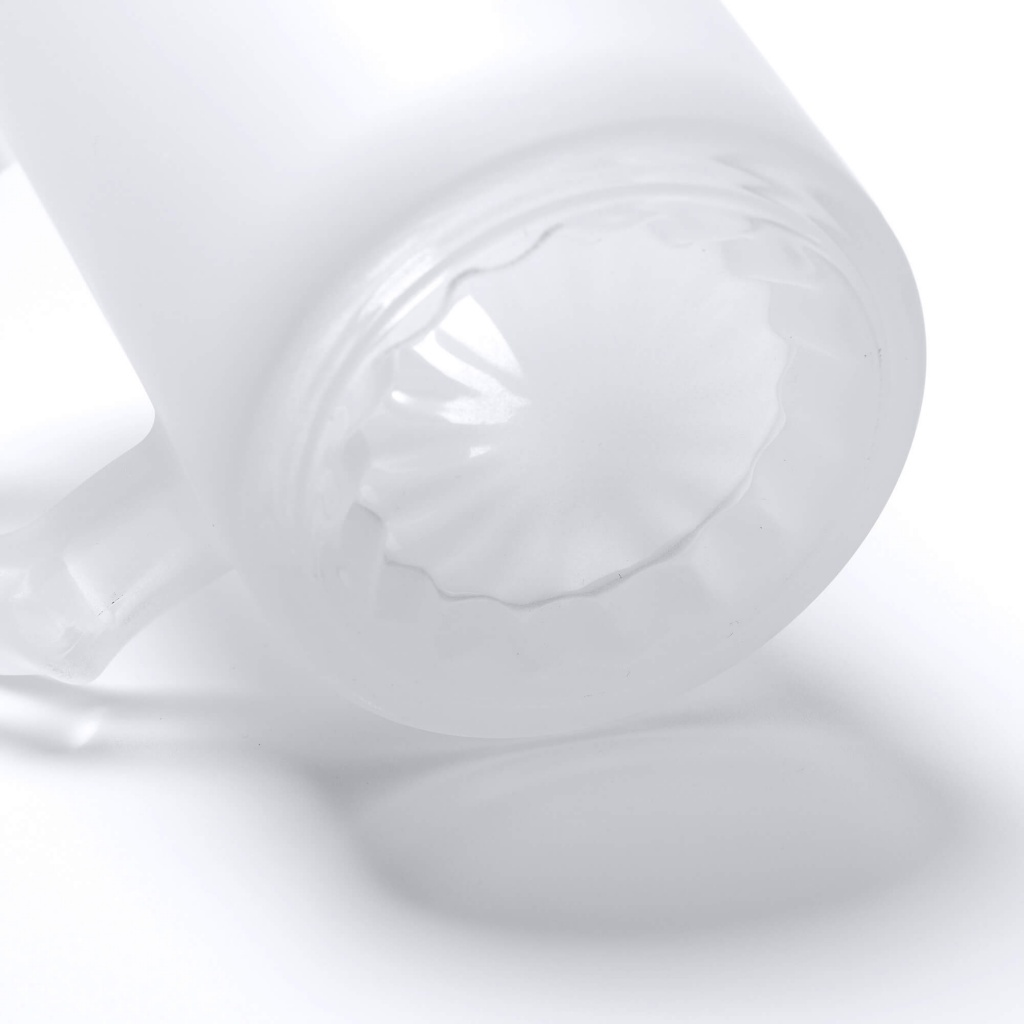 Kufel wykonany ze szkła borokrzemianowego z efektem lodu, przeznaczony do personalizacji techniką sublimacji.