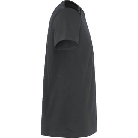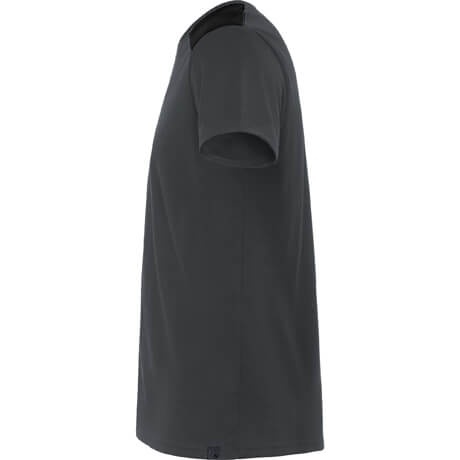 Kolorowa koszulka z krótkim rękawem, z okrągłym dekoltem wykończonym kontrastową wewnętrzną obwódką. Kontrastowe wstawki na ramionach oraz dopracowane detale.