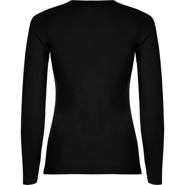 Damska koszulka z długim rękawem o dopasowanym kroju. Bez mankietów. Posiada szwy boczne.