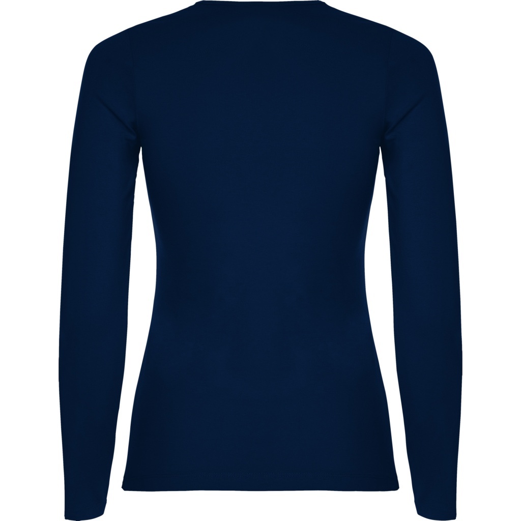 Damska koszulka z długim rękawem o dopasowanym kroju. Bez mankietów. Posiada szwy boczne.