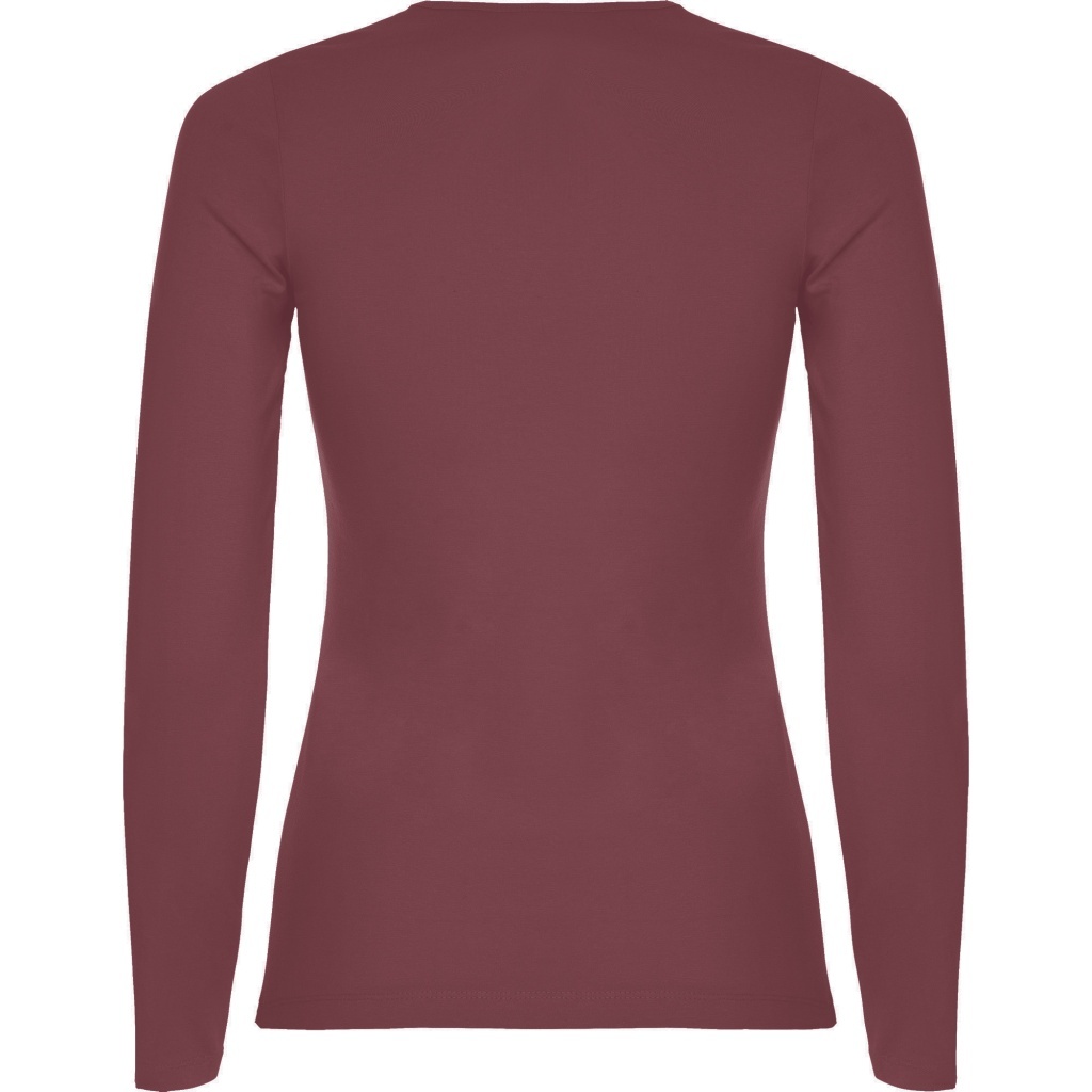Damska koszulka z długim rękawem o dopasowanym kroju. Bez mankietów. Posiada szwy boczne.