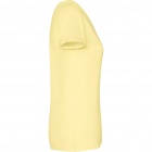 Damska koszulka z krótkim rękawem wykonana z 100% bawełny czesanej Single Jersey, w wykończeniu acid-wash. Posiada okrągły dekolt 1x1 oraz boczne szwy. Szwy w kolorze materiału.
