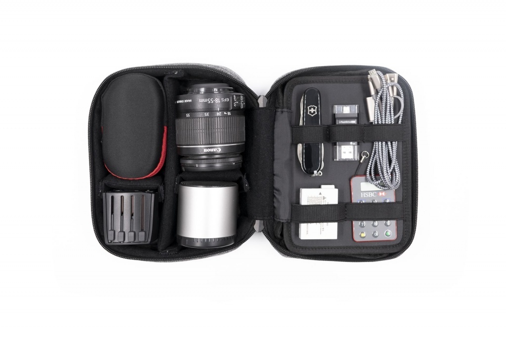 Wielozadaniowy organizer doskonale zabezpiecza i porządkuje codzienne przedmioty wartościowe, małą elektronikę, przewody zasilające, adaptery, ładowarki, słuchawki, karty pamięci itp.