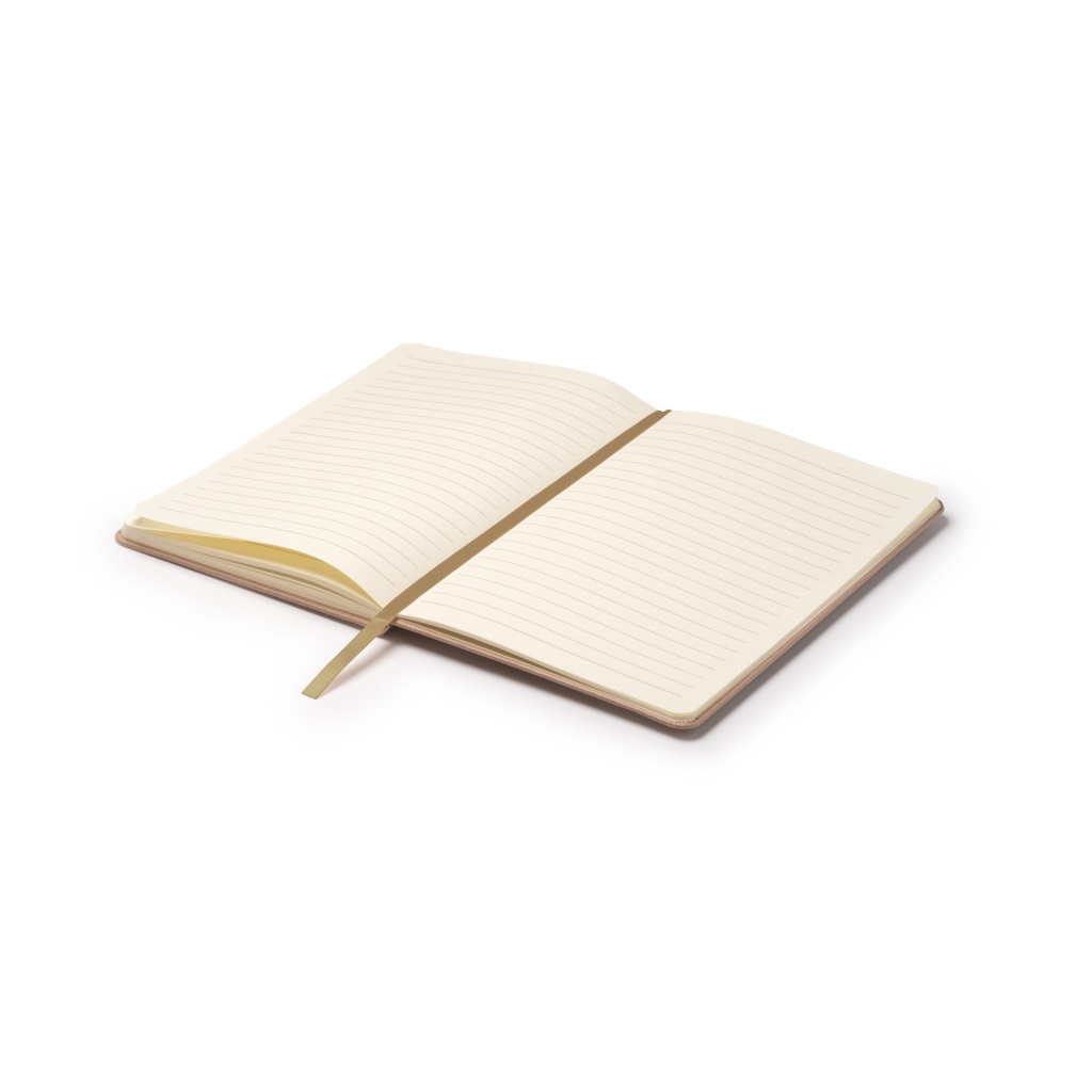 Notatnik A5 z twardą okładką wykonaną ze skrawków owoców. Posiada dopasowaną zakładkę oraz elastyczną gumkę; w środku 80 kartek w linię, idealnych do codziennych notatek.