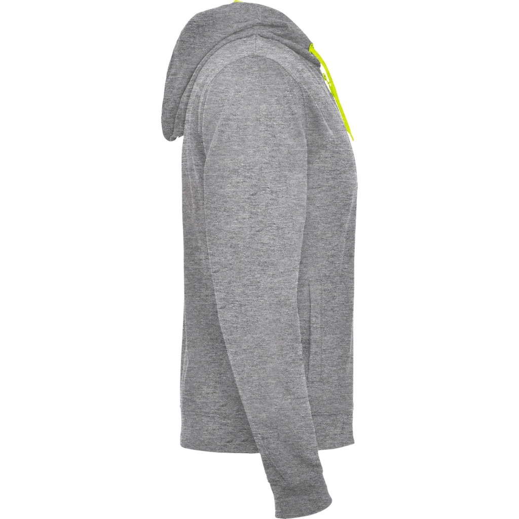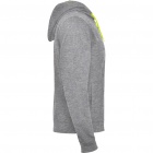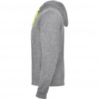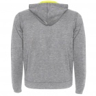 Rozpinana bluza z fluorescencyjnymi akcentami. Kaptur ma podszewkę z mikro perforowanej tkaniny poliestrowej w kontrastującym fluorescencyjnym kolorze. Sznurek i metalowe oczka również w fluorescencyjnym kolorze. Prążkowane mankiety i dół bluzy 1x1.