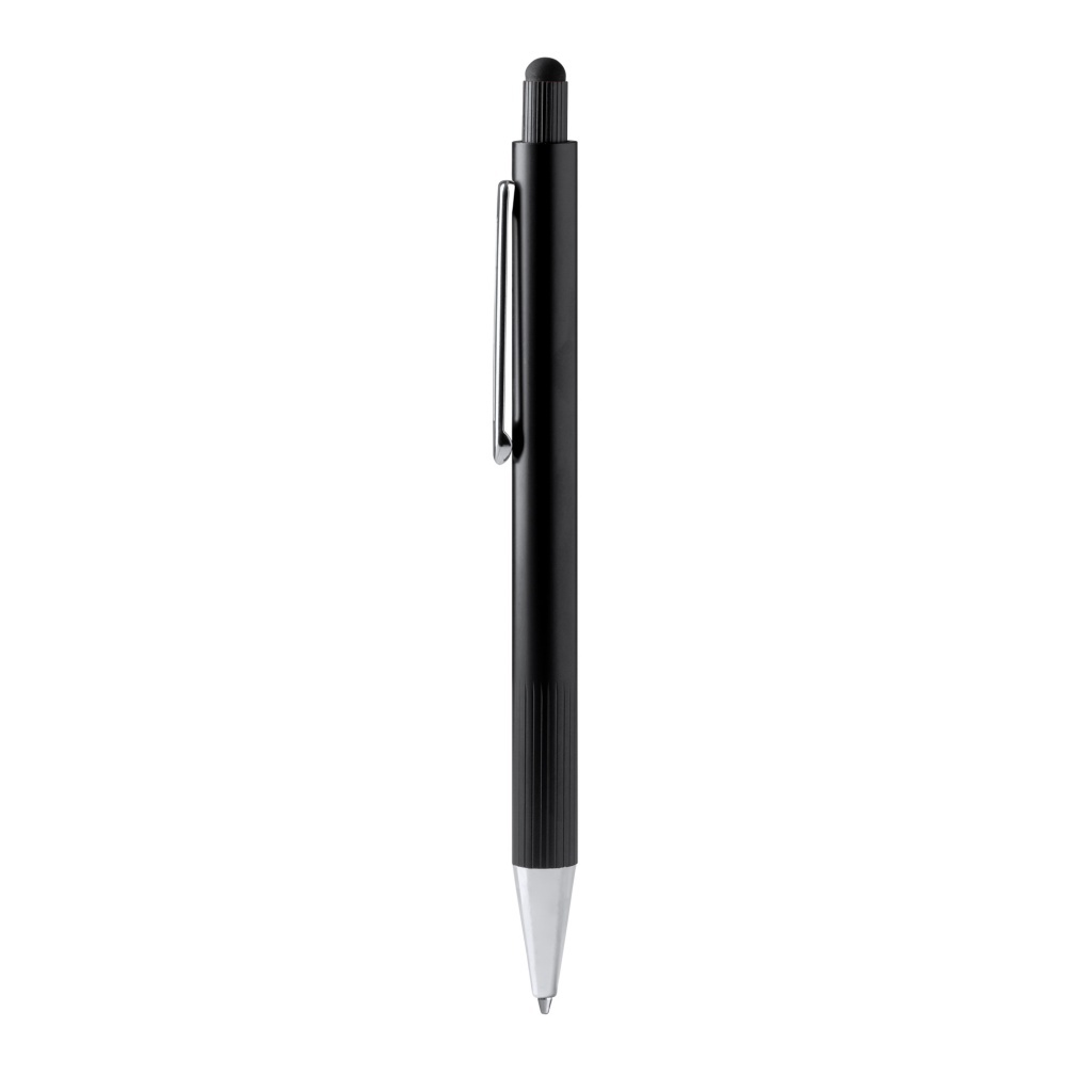 Elegancki, aluminiowy długopis z metalicznym wykończeniem oraz rysikiem. Wkład Jumbo z niebieskim tuszem.