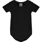 Body z krótkim rękawem dla niemowląt, tkanina single jersey. Okrągły dekolt wykończony lamówką 1x1. Zapięcie w kroku na zatrzaski.
