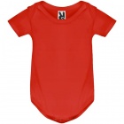 Body z krótkim rękawem dla niemowląt, tkanina single jersey. Okrągły dekolt wykończony lamówką 1x1. Zapięcie w kroku na zatrzaski.