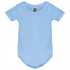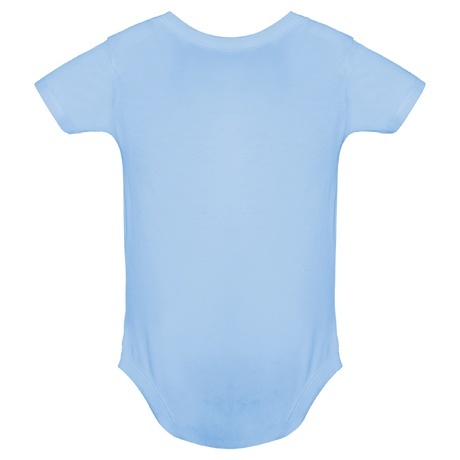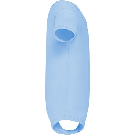 Body z krótkim rękawem dla niemowląt, tkanina single jersey. Okrągły dekolt wykończony lamówką 1x1. Zapięcie w kroku na zatrzaski.