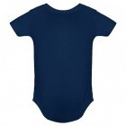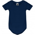 Body z krótkim rękawem dla niemowląt, tkanina single jersey. Okrągły dekolt wykończony lamówką 1x1. Zapięcie w kroku na zatrzaski.