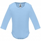 Body z długim rękawem dla niemowląt, wykonane z tkaniny single jersey. Okrągły dekolt wykończony lamówką 1x1. Zapięcie w kroku na zatrzaski.