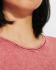 T-shirt z krótkim rękawem, dżinsowy efekt. Okrągły prążkowany dekolt ze wzmocnionym szwem na ramieniu. Podwójne szwy w pachach. Wywijane mankiety.