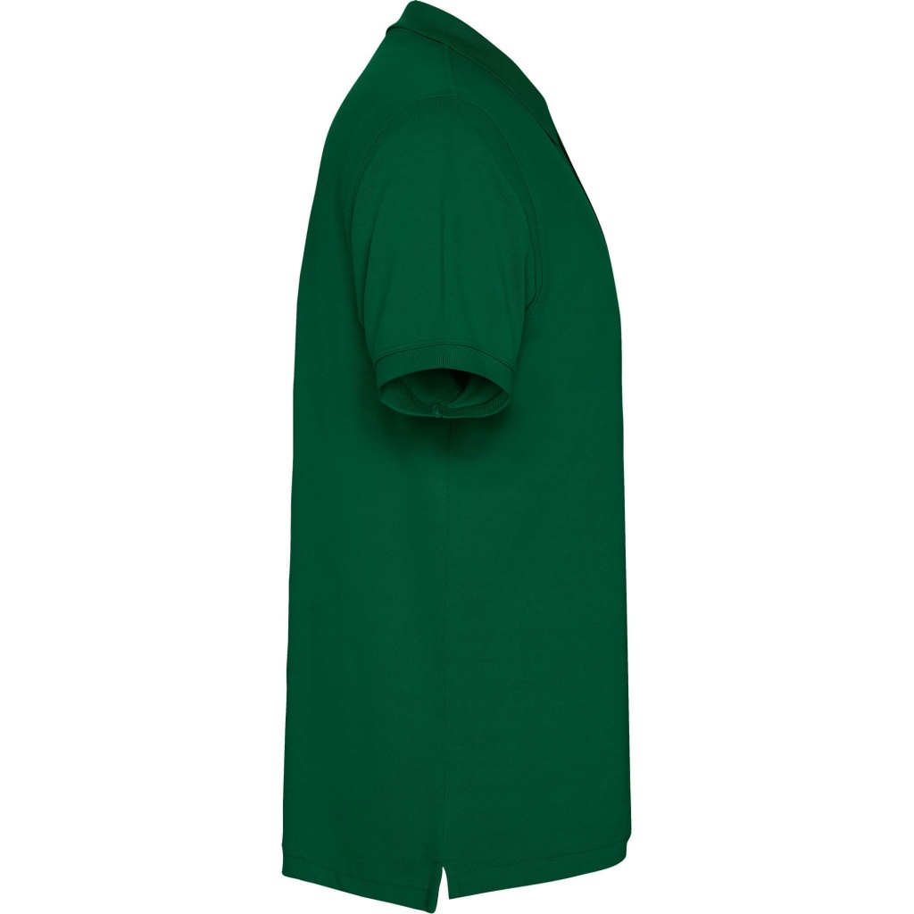 Model z krótkim rękawem o wysokiej jakości wykonania. Kołnierz zapinany na trzy guziki w kolorze koszulki. Kołnierzyk i mankiety prążkowane 1x1. Wzmocnione, kryte szwy przy kołnierzu. Boczne rozcięcia z krytymi szwami. Dłuższy tył dla lepszego dopasowania. Podwójne przeszycia na ramionach, rękawach oraz u dołu koszulki.