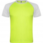 Koszulka sportowa z krótkim raglanowym rękawem, z rękawami w kontrastowym kolorze. Okrągły dekolt w kontrastowym kolorze ze wzmocnionymi krytymi szwami.