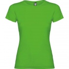 Dopasowana koszulka damska. Zaokrąglony, dwuwarstwowy ściągacz przy szyi, typowo damski fason. Wzmocnione, kryte szwy przy kołnierzyku i na ramionach, szwy boczne.
