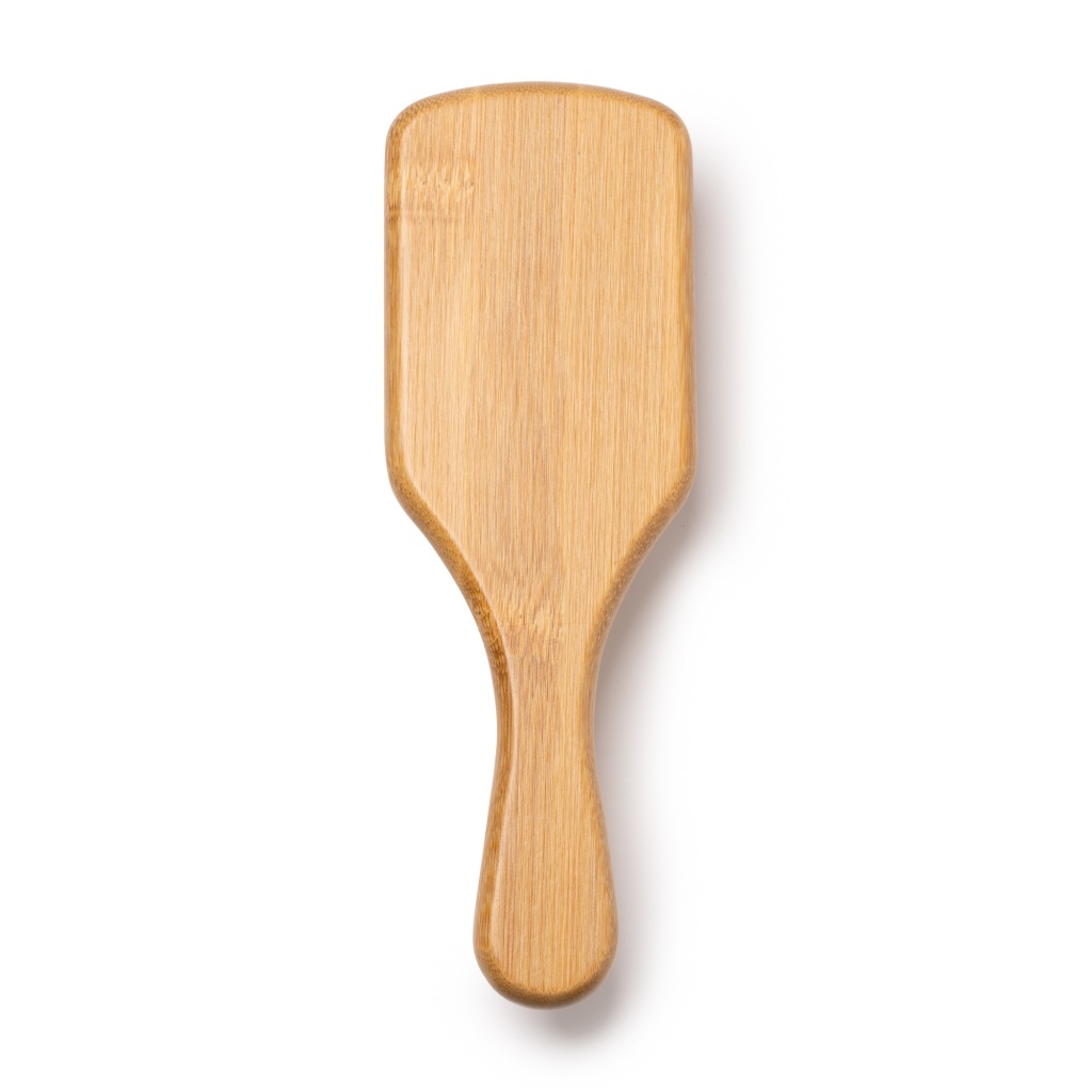 Szczotka do włosów z bambusowym korpusem oraz włosiem, prezentowana w ekologicznym pudełku — praktyczna i przyjazna środowisku.