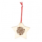 Drewniana ozdoba świąteczna w czterech wariantach: gwiazdka, drzewko, śnieżynka oraz bombka
