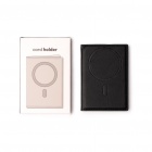 Składany, magnetyczny uchwyt na karty — praktyczne akcesorium do noszenia najważniejszych kart wraz z telefonem dzięki wbudowanemu systemowi magnetycznemu. Wyposażony w trzy wewnętrzne oraz jedną zewnętrzną przegrodę na karty.