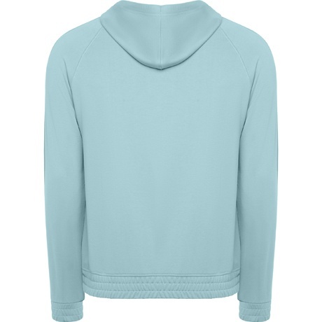 Uniwersalna bluza z kapturem w kroju unisex. Model typu kangurka z praktyczną kieszenią na brzuchu. Gładkie sznurki wyposażone w haftowane oczka. Brzegi bluzy przy pasie i rękawach wykonane z tego samego materiału. Na rękawach widoczny wypukły szew.