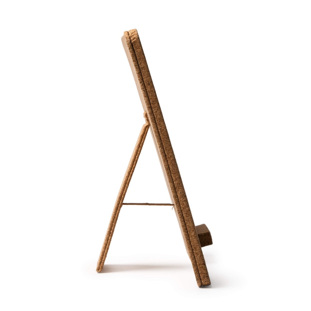 Bezprzewodowa ładowarka z ramką na zdjęcie, wykonana z naturalnego korka — idealna do fotografii w rozmiarze 10 x 15 cm.