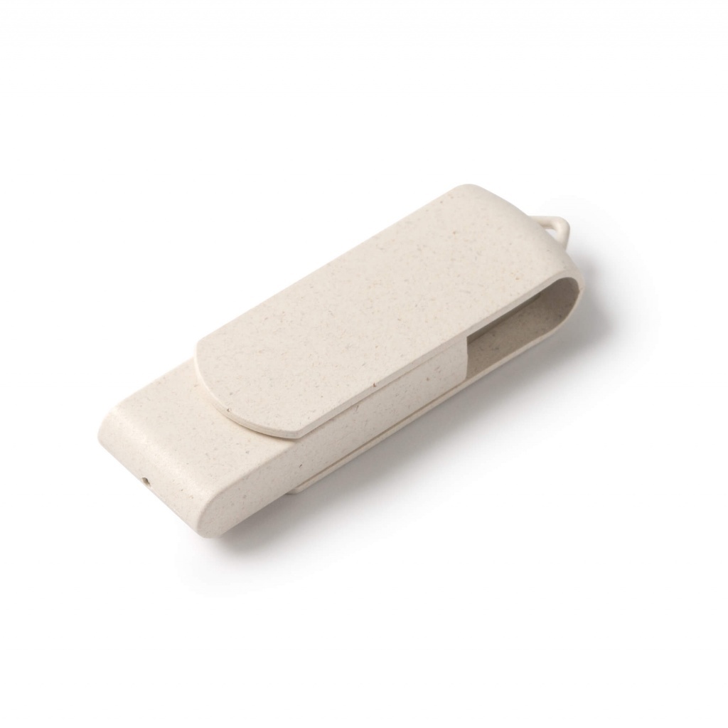 Pamięć USB o podstawowej konstrukcji i z obrotowym klipsem wykonana z włókna pszennego.