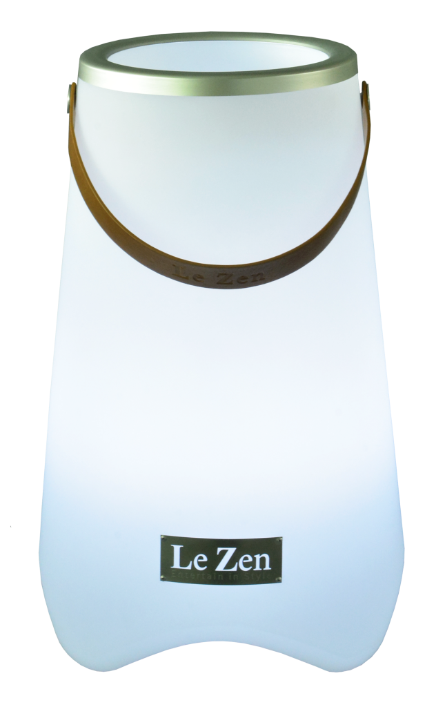 Le Zen to wszechstronne urządzenie łączące kolorową lampę LED, głośnik Bluetooth oraz funkcję chłodziarki do wina lub donicy na rośliny. Model Le Zen Grand to największy i najwydajniejszy wariant w serii. Le Zen L pomieści do 4 standardowych butelek wina, szampana lub likieru, wyposażony jest w głośnik Bluetooth 10 W i oferuje nastrojowe oświetlenie w 7 kolorach oraz trzy tryby efektów (miganie, zanikanie, sterowanie muzyką). W komplecie znajduje się bezprzewodowy pilot zdalnego sterowania. Urządzenie posiada klasę wodoodporności IP44, akumulator litowo-jonowy 4000 mAh zapewniający do 5 godzin pracy oraz jest odporne na wstrząsy. Dzięki bezprzewodowej konstrukcji i poręcznemu wykonaniu sprawdzi się na imprezach, podczas wypoczynku nad wodą, piknikach czy jako designerski element wnętrza lub baru.