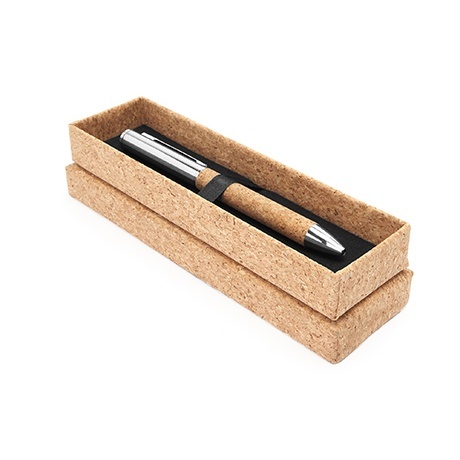 Elegancki metalowy długopis z chromowanymi elementami i uchwytem z korka.