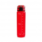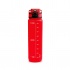Butelka z tworzywa Tritan posiada półprzezroczysty korpus i dopasowaną zakrętkę z praktycznym uchwytem do przenoszenia. Na ściance znajdują się wskazówki dotyczące nawodnienia oraz oznaczenie pojemności, co ułatwia kontrolę przyjmowanej ilości płynów. Produkt łączy użyteczność z estetyką.