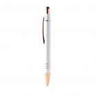 Długopis z mechanizmem wciskanym, metalowym, matowym korpusem oraz miedzianymi elementami. Na przycisku umieszczony wskaźnik dotykowy. Wkład atramentowy Jumbo w kolorze niebieskim.
