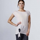 T-shirt z krótkim rękawem i szerokim dekoltem. Charakterystyczny detal: wiązanie na boku.
