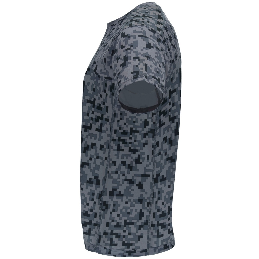 Techniczna koszulka we wzorki z krótkim rękawem z okrągłym dekoltem. Posiada wzmocnione, kryte szwy na karku w kolorze fluorescencyjnym oraz boczne i pachowe panele w tym samym kolorze.