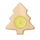 Świeca na drewnianej podstawce z motywem świątecznym (gwiazdka i choinka).