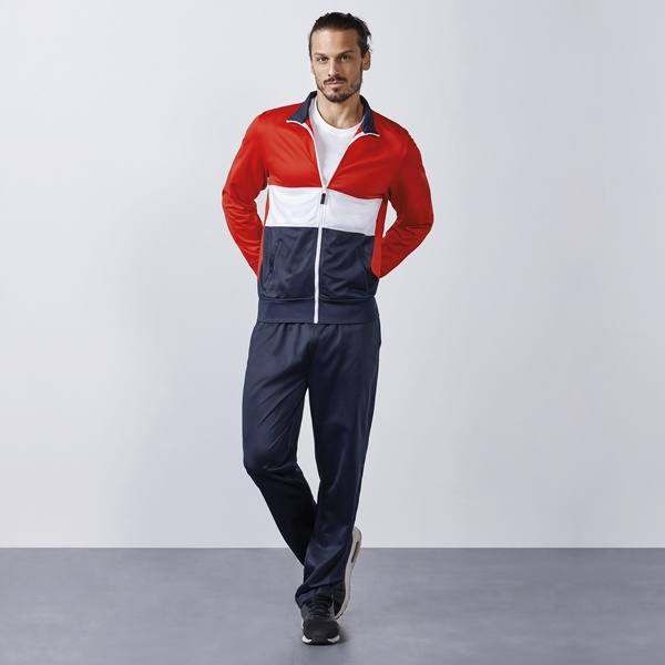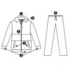 5. Spodnie z elastycznym pasem regulowanym ściągaczem, dwie boczne kieszenie wykończone lamówką.