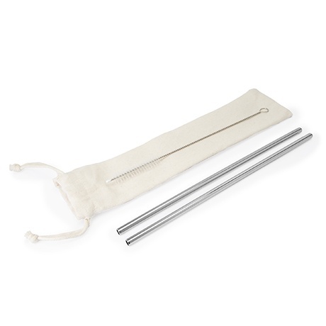 Komplet 2 słomek ze stali nierdzewnej 304 w bawełnianym etui.