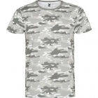 T-shirt z krótkim rękawem w stylu moro. Zaokrąglony kołnierzyk. Czterowarstwowy ściągacz, wzmocnione kryte szwy na karku i ramionach. Szwy boczne.