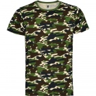 T-shirt z krótkim rękawem w stylu moro. Zaokrąglony kołnierzyk. Czterowarstwowy ściągacz, wzmocnione kryte szwy na karku i ramionach. Szwy boczne.