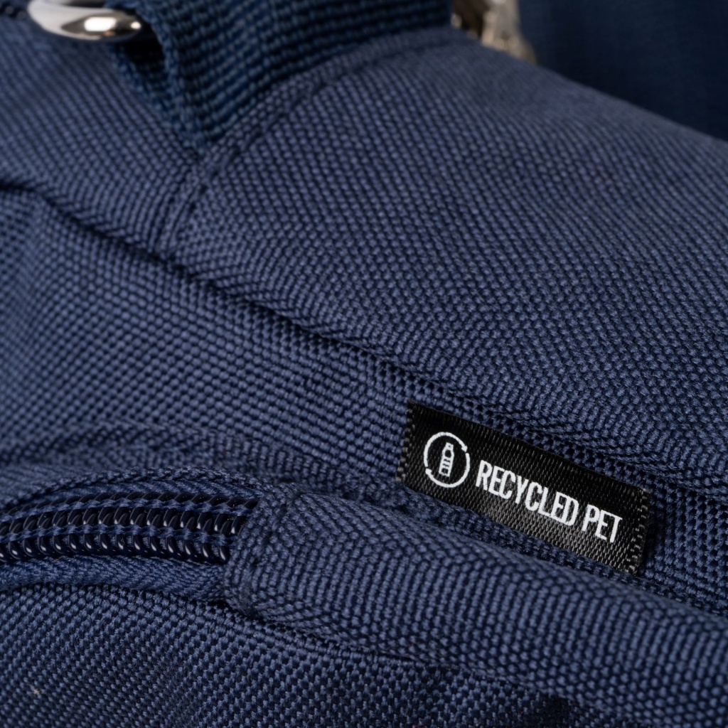 Saszetka na ramię uszyta z materiału 600D RPET. Posiada główną komorę z kieszenią wewnętrzną oraz dwie przednie kieszenie zapinane na zamek. Regulowany pasek z metalowymi elementami.