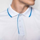 Dwukolorowa koszulka polo z kontrastowymi wykończeniami. Wykonana z oddychającej tkaniny, łatwa w praniu i szybkoschnąca. Kryte szwy na karku zapewniają komfort noszenia.